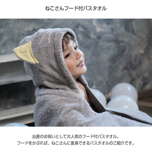 「ねこさんフード付バスタオル」ねこさんに変身できるバスタオル 出産祝に大人気 今治認定