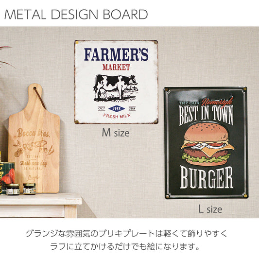 アンティークなカフェ風ブリキの看板!デザインボードメタル L