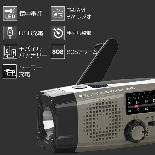 RELAX エマージェンシー カラビナ 多機能ラジオ 防災