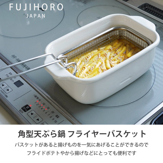 fujihoro (富士ホーロー) 角型天ぷら鍋フライヤーバスケット IH対応 温度計 琺瑯